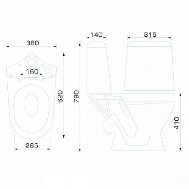| Межосевое расстояние отверстий крепления бачка, мм | 160 |
