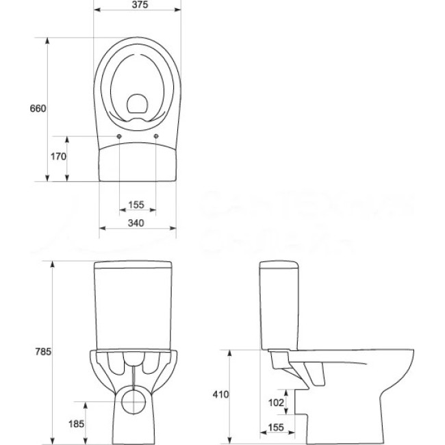 | Межосевое расстояние отверстий крепления бачка, мм | 155 |