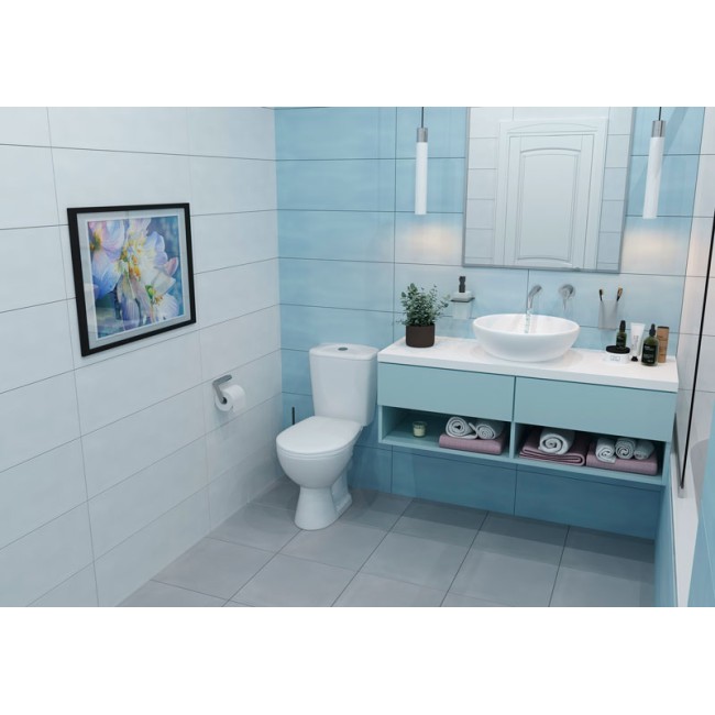 Унитаз-компакт укомплектован чашей, имеющей полный омыв благодаря улучшенной системе смыва. Ее прекрасно дополняет 2-уровневая арматура производства известных брендов.
