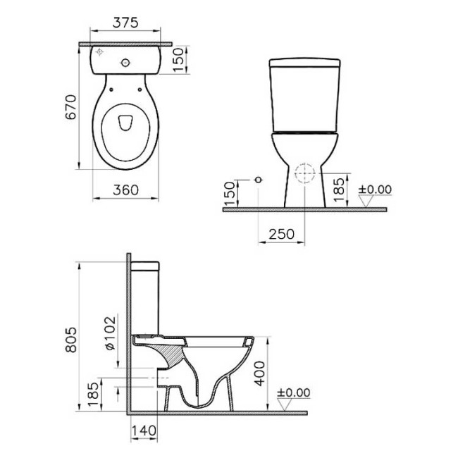 Унитаз произведен из фарфора. Параметры: ширина 360 мм, высота 820 мм. Унитаз имеет закругленную форму. Тип смыва в этом изделии каскадный. Направление выпуска горизонтальное, в стену, и оно должно соответствовать системе водоотведения в доме. Сочетание характеристик порадует поклонников классических моделей. Произведено изделие в Турции.