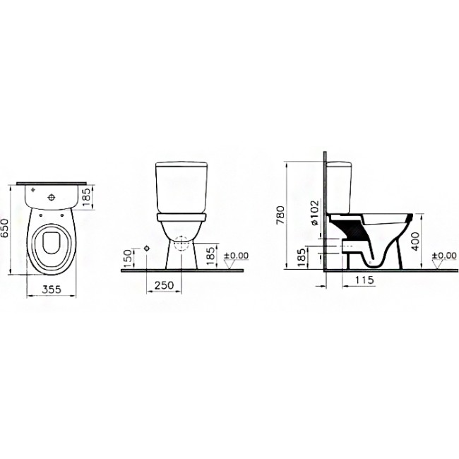 Унитаз произведен из фарфора. Параметры: ширина 355 мм, высота 780 мм. Унитаз имеет закругленную форму. Тип смыва в этом изделии каскадный. Направление выпуска горизонтальное, в стену, и оно должно соответствовать системе водоотведения в доме. Сочетание характеристик порадует поклонников классических моделей. Произведено изделие в Турции.