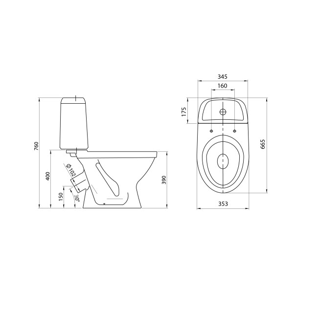| Форма унитаза | Овальная |