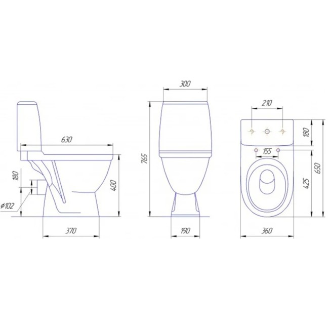 | Межосевое расстояние отверстий крепления бачка, мм | 210 |