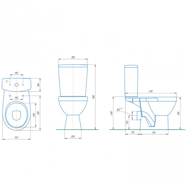 | Межосевое расстояние отверстий крепления бачка, мм | 150 |