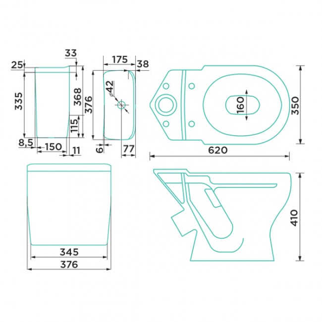 | Высота чаши унитаза, мм | 415 |