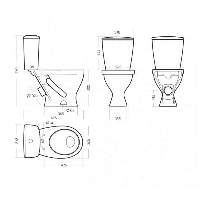 Межосевое расстояние отверстий крепления бачка, мм | 160 |