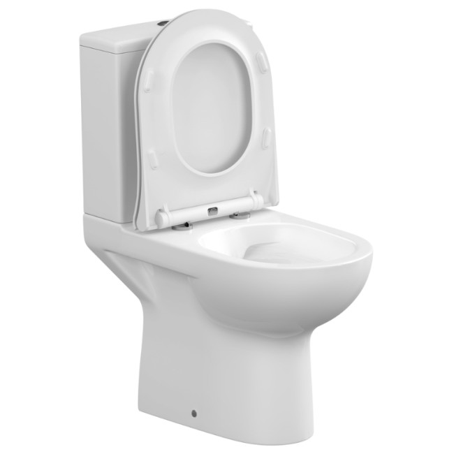В комплектацию входит: безободковая чаша, бачок, двухрежимная арматура, ультратонкое антибактериальное сиденье из дюропласта с функцией плавного закрывания. Крепление для монтажа компакта к полу, инструкция по установке.