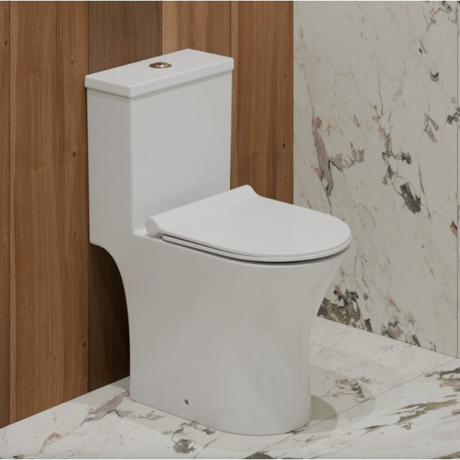 Унитаз-моноблок EVA GOLD TR1197 безободковый,сиденье тонкое ДП,арматура (с гофрой и подводкой)