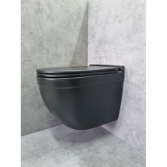 Унитаз подвесной 2198 МВ матовый чёрный, безободковый, крышка дюроп,горизонт выпуск CeramaLux