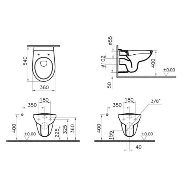 | Ширина унитаза без упаковки, мм | 360 |