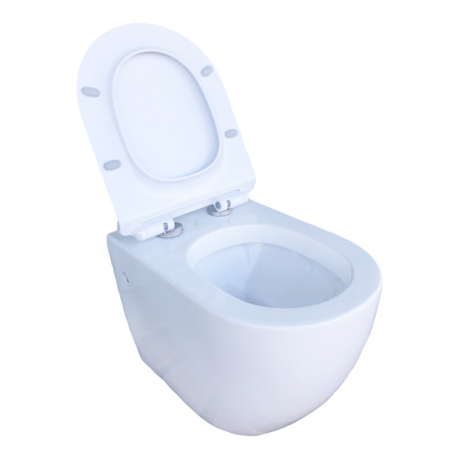Унитаз подвесной К43, безободковый, сиденье тонкое ДП, крепления Eva Gold