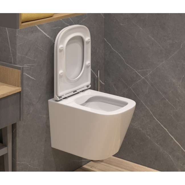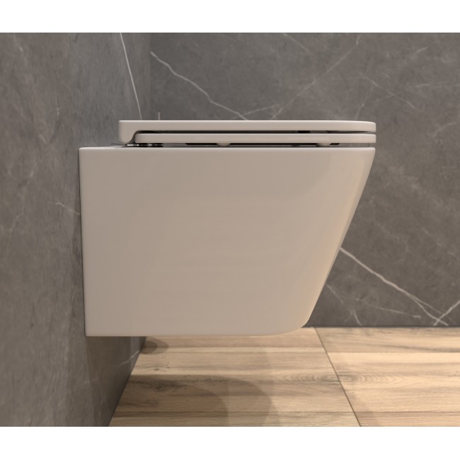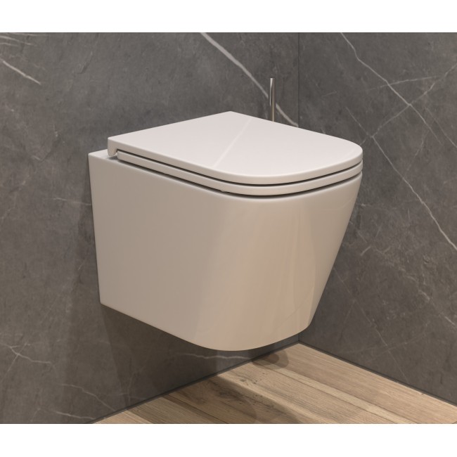 Унитаз подвесной К53, безободковый, сиденье тонкое, крепление Eva Gold