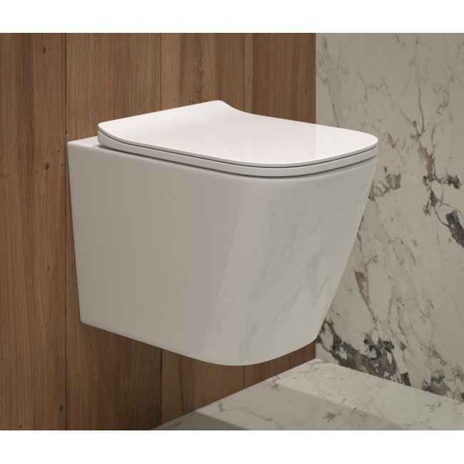 Унитаз подвесной SM9310 безободковый, сиденье тонкое ДП Eva Gold