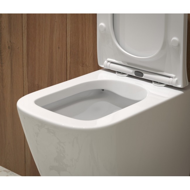 Унитаз подвесной 9320 В комплект изделия входят: -крепления -сиденье из дюропласта Soft Close с антибактериальным покрытием и функцией быстрого съема -горизонтальный выпуск -полное прилегание к стене