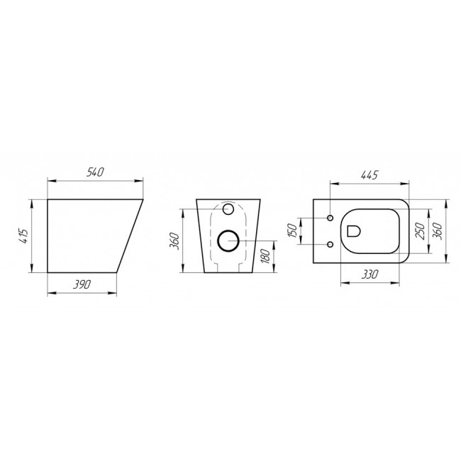 Унитаз приставной P03 безободковый, сиденье тонкое ДП, крепления