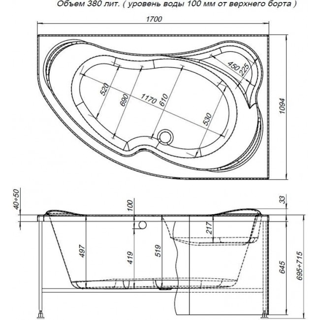 Максимальная нагрузка на дно ванны, кг | 400 |