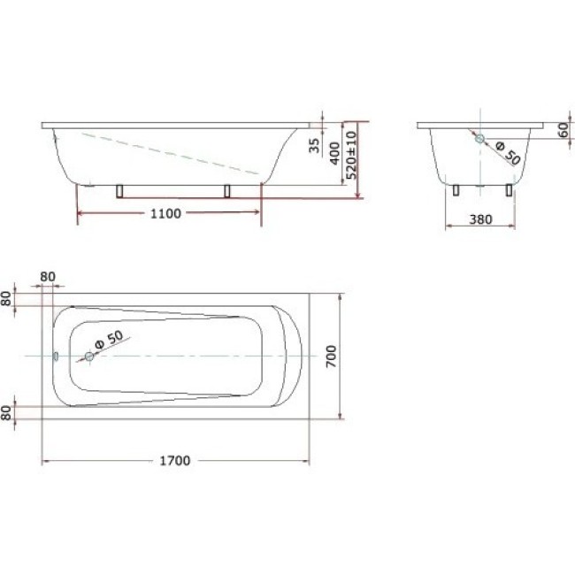Максимальная нагрузка на дно ванны, кг | 300 |