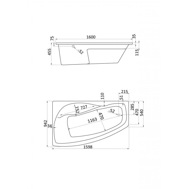Ванна акриловая Майорка XL 160*95 асимметричная левая Santek