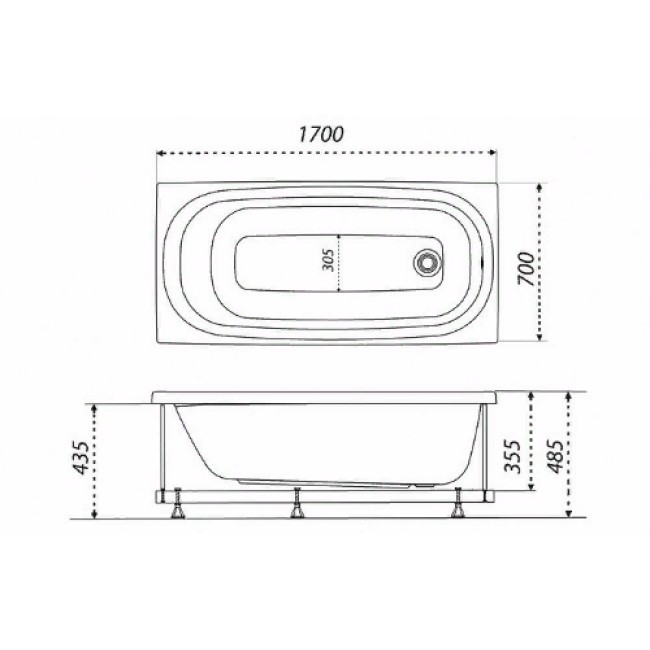 | Длина ванны, мм | 1700 |