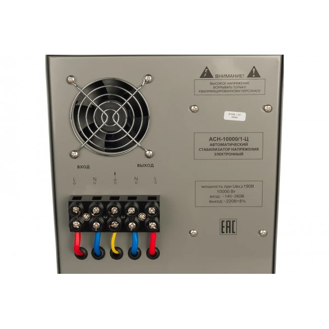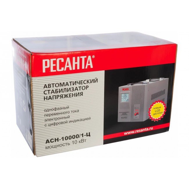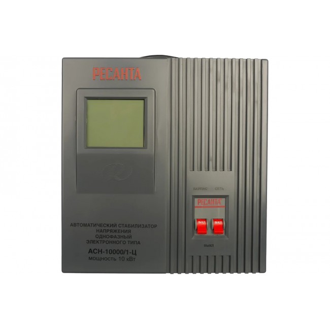 Стабилизатор напряжения Ресанта АСН 10000/1-Ц релейного типа предназначен для выравнивания входного напряжения и защиты приборов от перепадов напряжения с суммарной мощностью до 10 кВт. Работает с напряжением 220В с точностью до +/-8%. Устройство оснащено фильтрами сетевых помех, предотвращающими искажение частотной синусоиды, микропроцессорным управлением и цифровым индикатором напряжения, на котором отображаются параметры напряжения. Превышение пределов поддерживаемого входного напряжения автоматически отключает подачу питания. Прочный корпус защищает внутренние узлы аппарата от повреждений. Данный стабилизатор может обеспечивать стабильным питанием - телевизор, ресивер, DVD проигрыватель, кассовый аппарат, газовый котел.