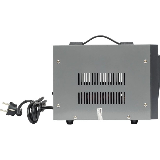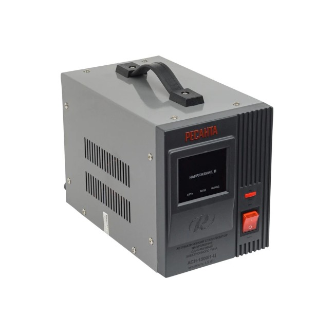 Стабилизатор напряжения Ресанта АСН 1500/1-Ц релейного типа предназначен для выравнивания входного напряжения и защиты приборов от перепадов напряжения с суммарной мощностью до 1,5 кВт. Работает с напряжением 220В с точностью до +/-8%. Устройство оснащено фильтрами сетевых помех, предотвращающими искажение частотной синусоиды, микропроцессорным управлением и цифровым индикатором напряжения, на котором отображаются параметры напряжения. Превышение пределов поддерживаемого входного напряжения автоматически отключает подачу питания. Прочный корпус защищает внутренние узлы аппарата от повреждений. Данный стабилизатор может обеспечивать стабильным питанием - телевизор, ресивер, DVD проигрыватель, кассовый аппарат, газовый котел.