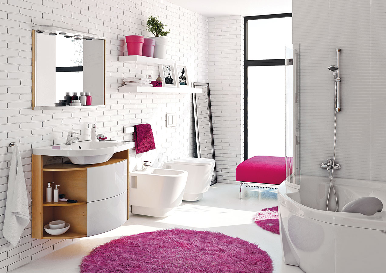 Чтобы помещение смотрелось более просторным, стоит избегать темных оттенков при выборе отделочных материалов. Лучше купить оригинальную раковину, тогда именно она станет «изюминкой» помещения, а для большего уюта добавить мягкий коврик. В такой комнате важно правильно разместить все элементы, чтобы они не мешали друг другу, нельзя перегружать пространство обилием декора.