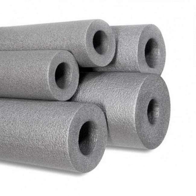 Изоляция для труб изготавливается из вспененного полиэтилена, имеет закрытую пористую структуру и серебристо серый цвет.