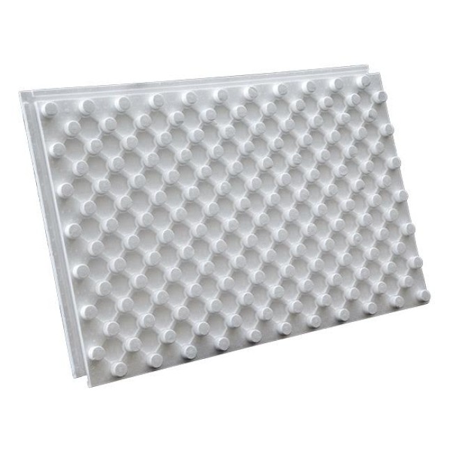 экологически чистый материал; может использоваться при температуре от -100° до +80° C. Область применения: Изолирующий слой - 25 мм, бобышка - 20 мм. Шаг укладки трубы - 50 мм. Замки типа шип-паз по периметру. Линейка с шагом 1 см