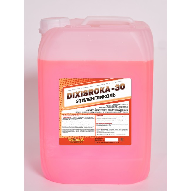 Антифриз «DIXIS-30» предназначается для использования в автономных системах отопления и кондиционирования, с целью исключения «размораживания» при низких температурах, а также для защиты оборудования от возникновения коррозии, образования накипи, развития микроорганизмов. «DIXIS-30» представляет собой водный раствор моноэтиленгликоля, содержащий сбалансированный пакет присадок, в который входят: антикоррозионные, антипенные, антиокислительные и термостабилизирующие, а также присадки, повышающие инертность к уплотнительным материалам.