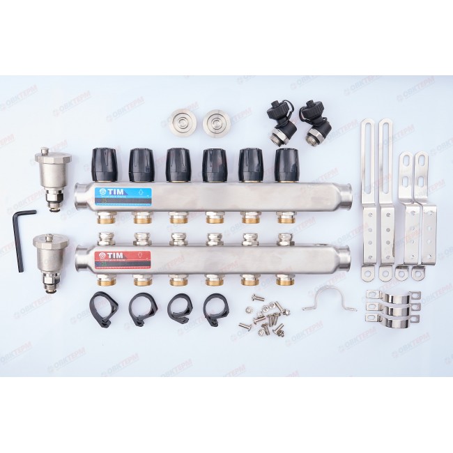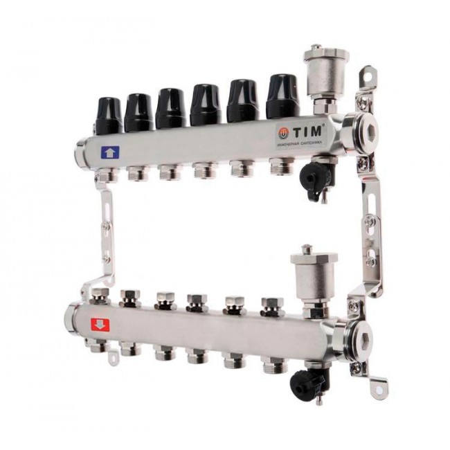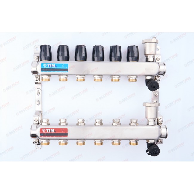 Коллектор без расходомеров без кранов TIM НЕРЖ 1" на 6 выходов