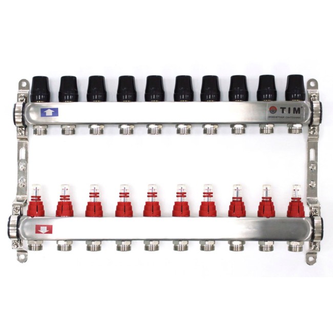 Коллектор с расходомерами без кранов и воздухоотводчиков 1" на 10 выходов KDS5010 TIM