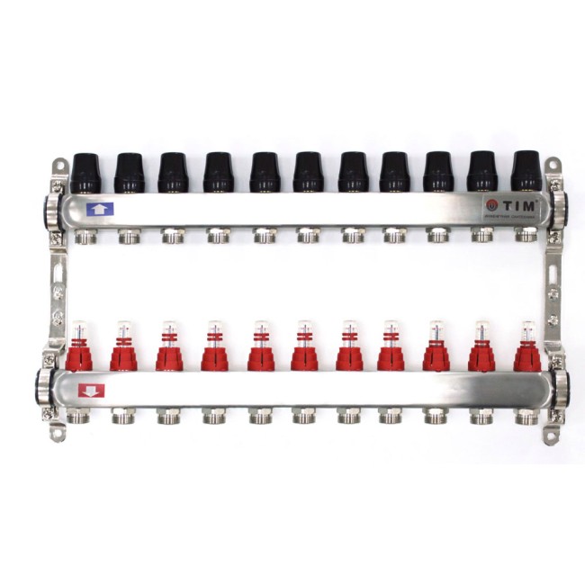 Коллектор с расходомерами без кранов и воздухоотводчиков 1" на 11 выходов KDS5011 TIM