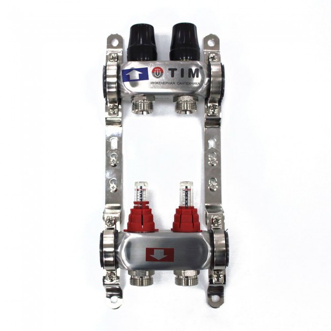 Коллектор с расходомерами без кранов и воздухоотводчиков 1" на 2 выхода KDS5002 TIM