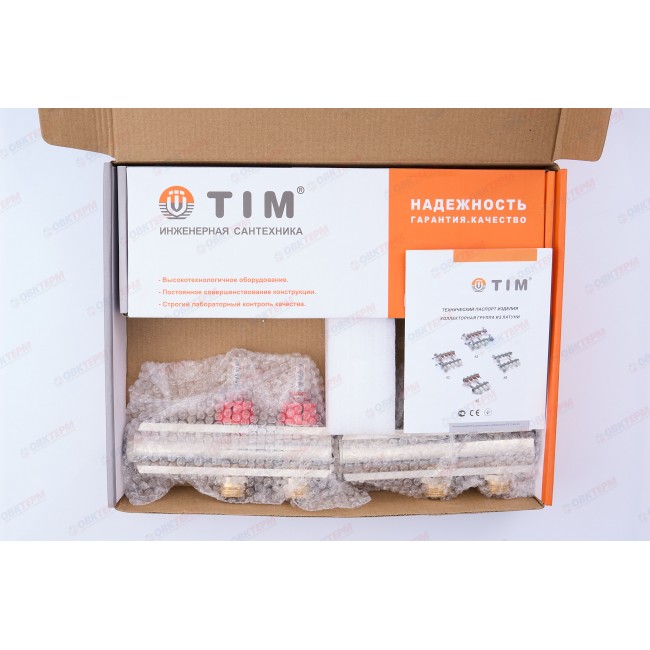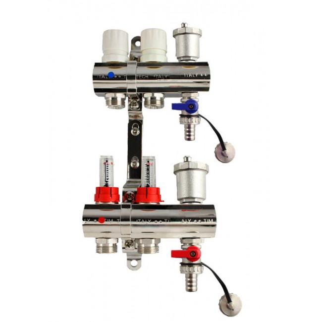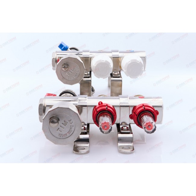 Коллектор с расходомерами без кранов латунный 1" на 2 выхода KC002 TIM