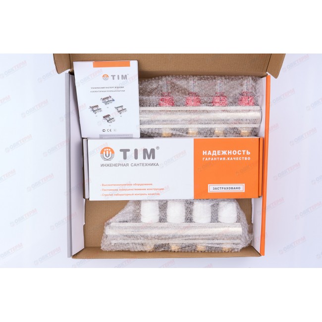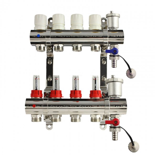 Коллектор с расходомерами без кранов латунный 1" на 4 выхода KC004 TIM
