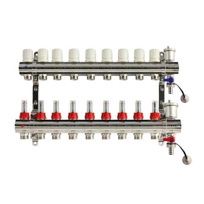 Комплектация | Коллекторный блок с расходомерами и воздухоотводчиком |