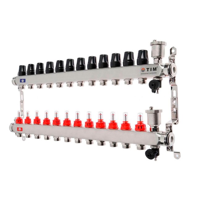 Коллектор с расходомерами без кранов нерж 1" на 12 выходов KCS5012 TIM