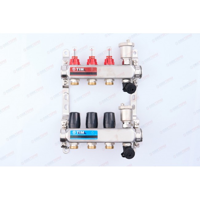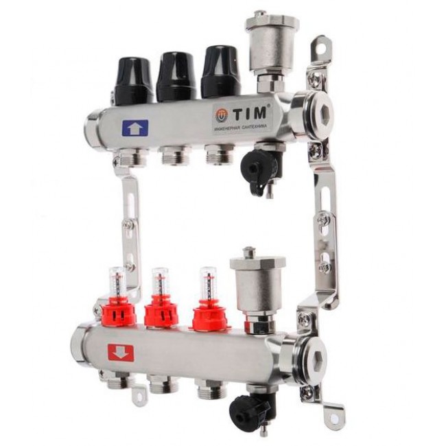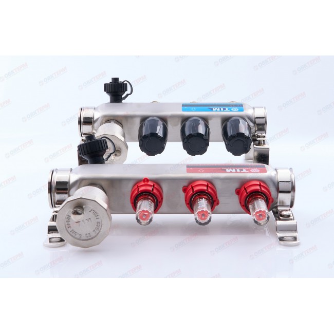 Коллектор с расходомерами без кранов нерж 1" на 3 выхода KCS5003 TIM