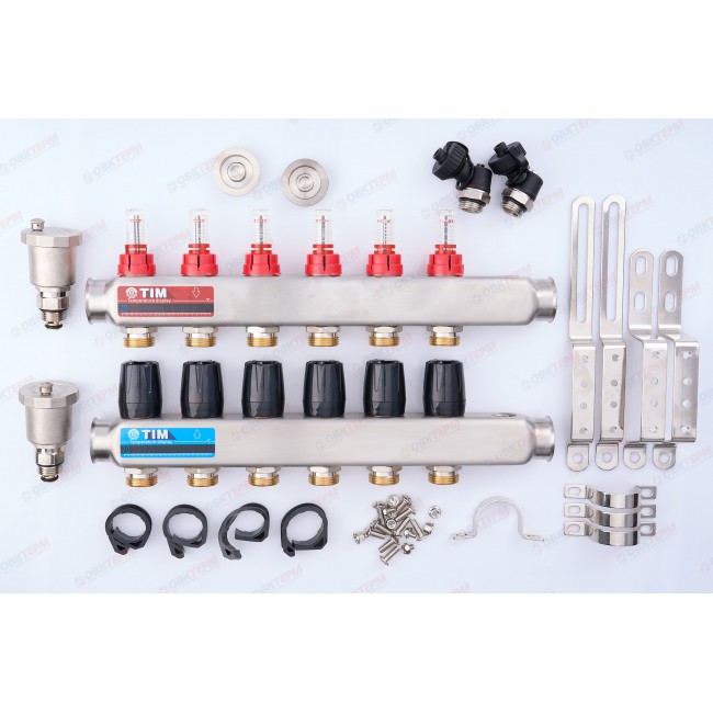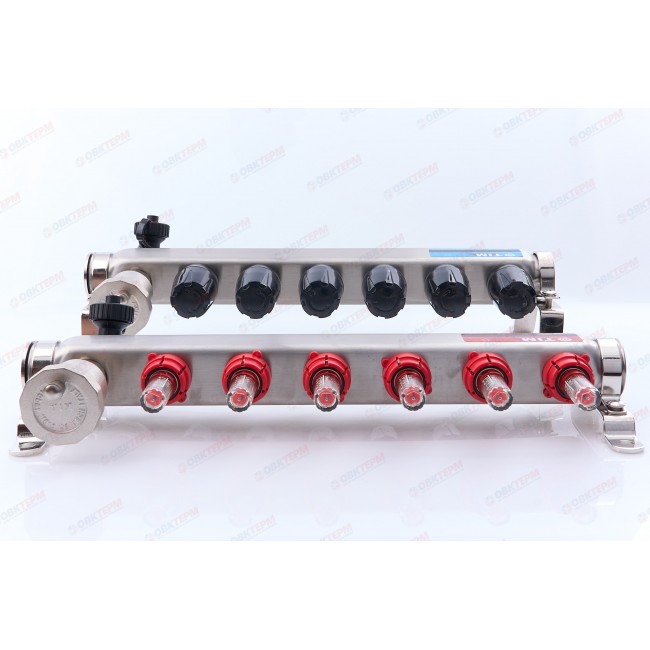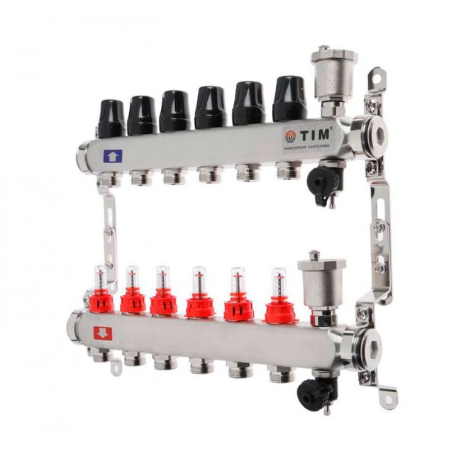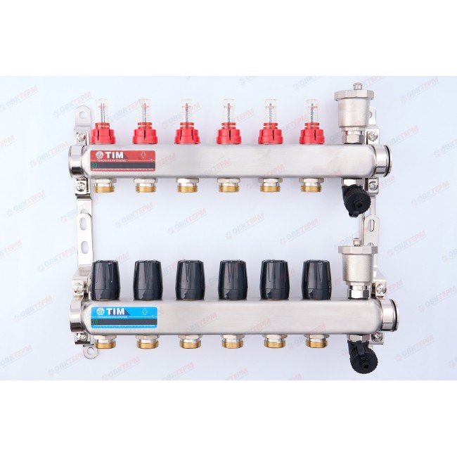 Коллектор с расходомерами без кранов нерж 1" на 6 выходов KCS5006 TIM