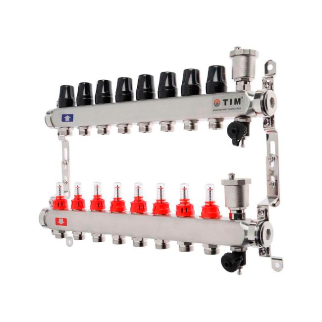 Коллектор с расходомерами без кранов нерж 1" на 8 выходов KCS5008 TIM