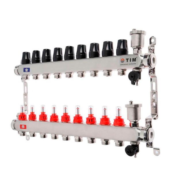 Коллектор с расходомерами без кранов нерж 1" на 9 выходов KCS5009 TIM
