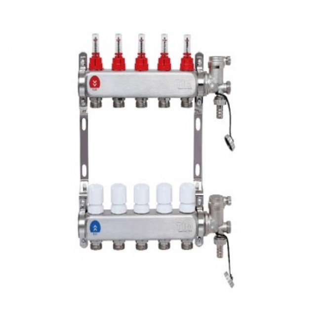 Коллектор с расходомерами без кранов TIM НЕРЖ 1*3/4" ЕК на 10 выходов