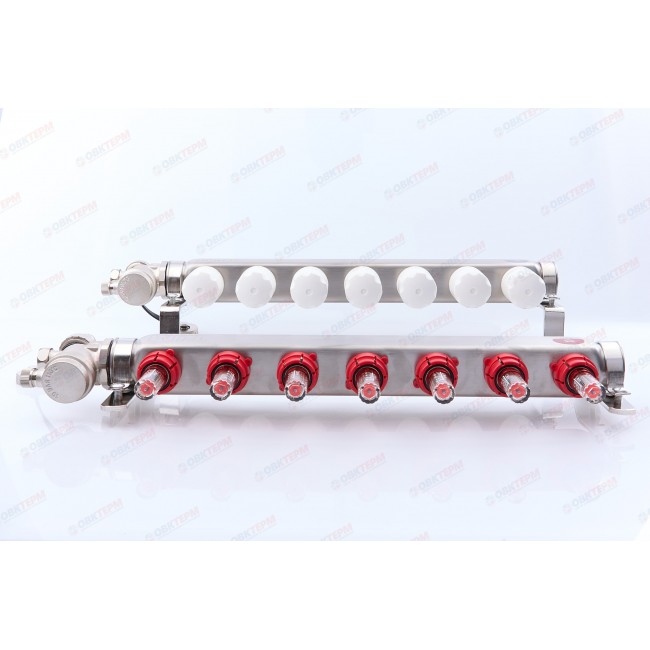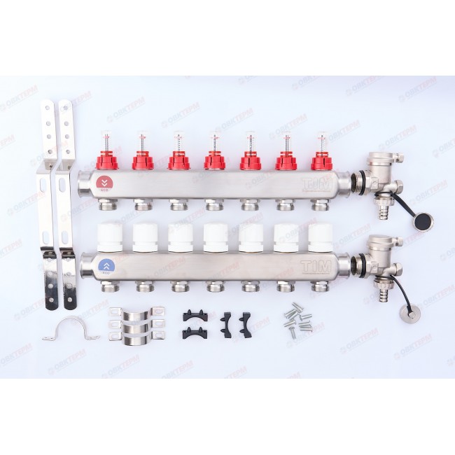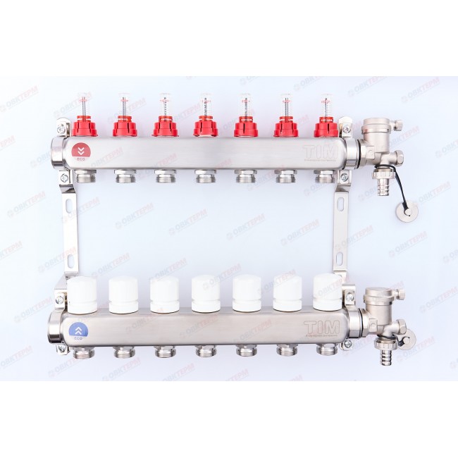 Коллектор с расходомерами без кранов TIM НЕРЖ 1*3/4" ЕК на 7 выходов