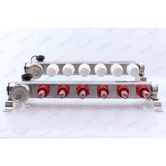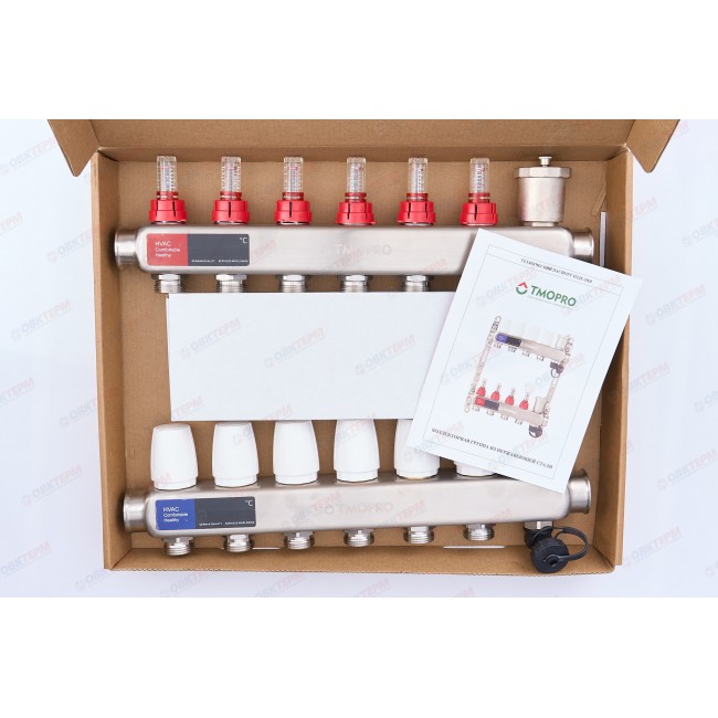 Коллектор с расходомерами без кранов TMOPRO НЕРЖ 1" на 6 выходов