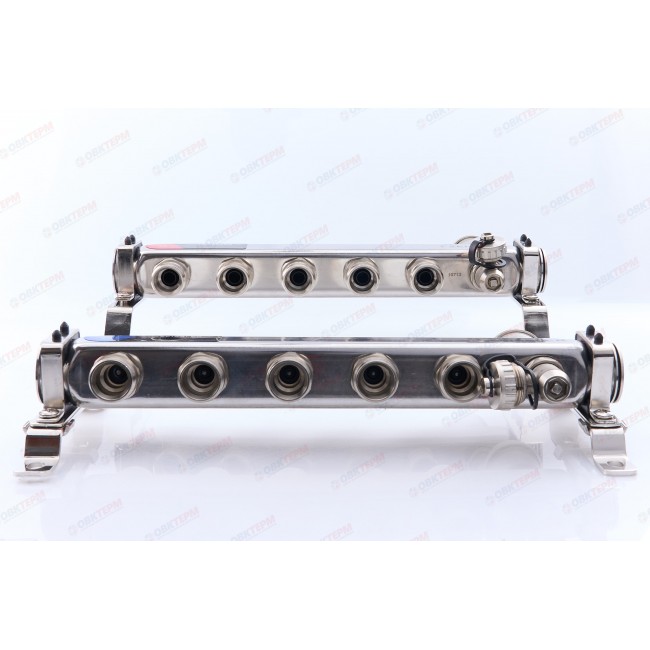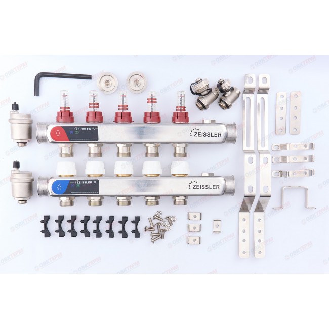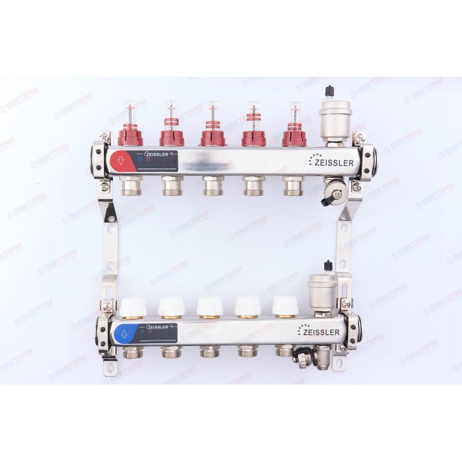 Коллектор с расходомерами и воздухоотводчиком нержавеющая сталь 1" на 5 выходов ZEISSLER