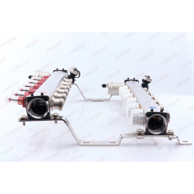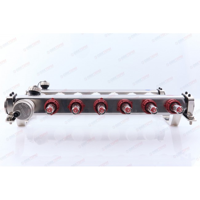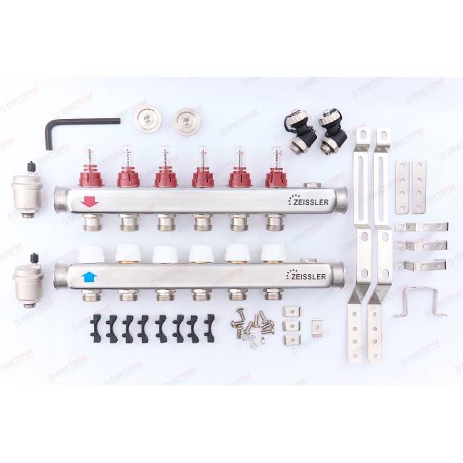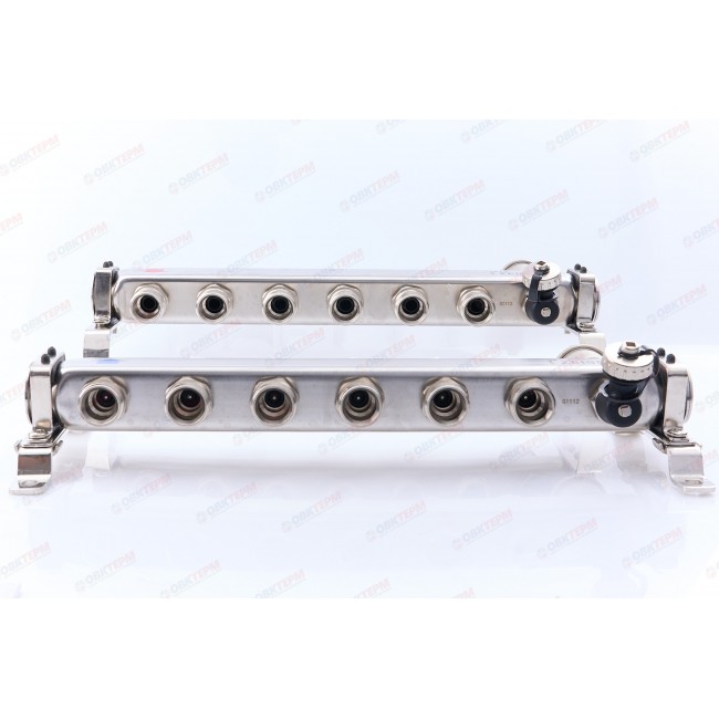 Коллектор с расходомерами и воздухоотводчиком нержавеющая сталь 1" на 6 выходов ZEISSLER