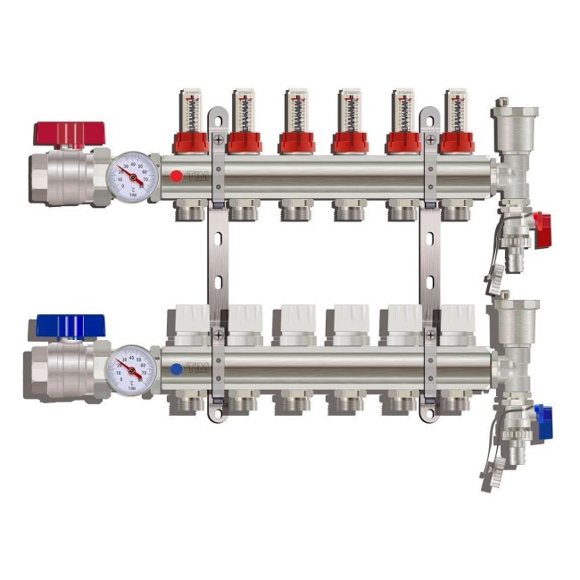 Коллектор с расходомерами латунный 1" с кранами на 6 выходов KA006 TIM