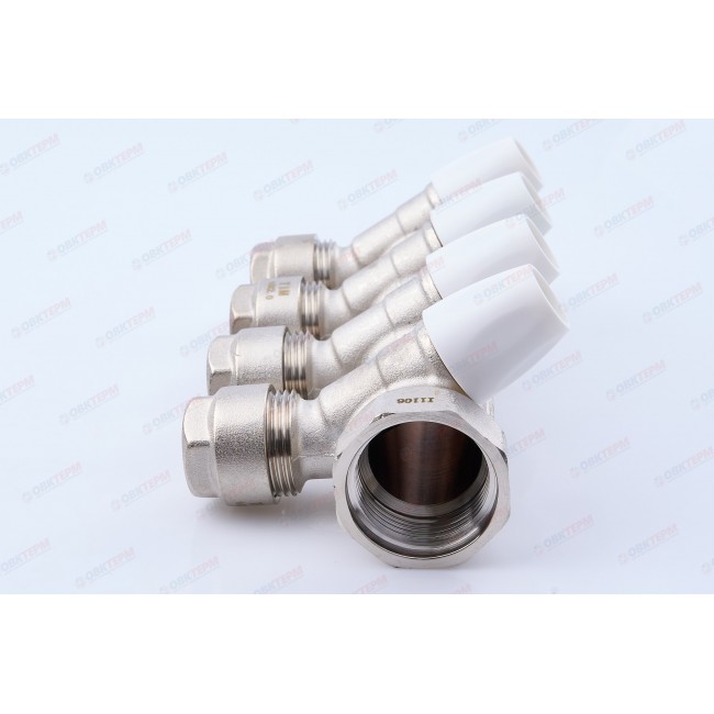Количество в упаковке: 3шт. Количество в коробке: 12шт. Сантехнический коллектор TIM вентильного типа, 1" г/ш - 16 цанга, 45°/ 4 вых., арт. MR135N-1-C-4. Сантехнический регулирующий коллектор TIM с патрубками под углом 45° применется для монтажа водопроводных систем. Коллектор оснащен отсекающими кран-буксами на каждом из выходов, цанговыми соединениями 1/2" (Ø 16) для подключения трубы из сшитого полиэтилена или металлопластиковой трубы. Кран-буксы (вентили) позволяют отрегулировать поток или отключить часть сети для ремонта или обслуживания не нарушая работу других контуров. Регулирующий коллектор TIM имеет подключение 1" (Ø 25) и четыре патрубка коллектора с цанговым подключением 1/2" (Ø 16).