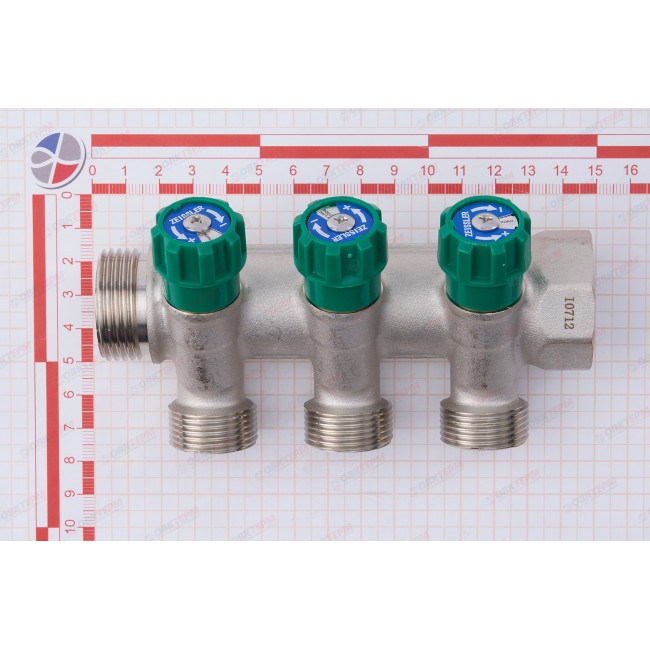 Коллектор вентильный 1" - 3/4" Н 3 выхода без евроконуса MR135NE-1-3 TIM