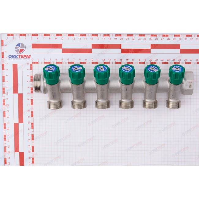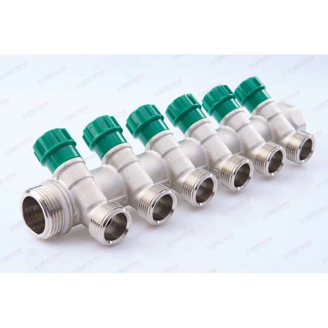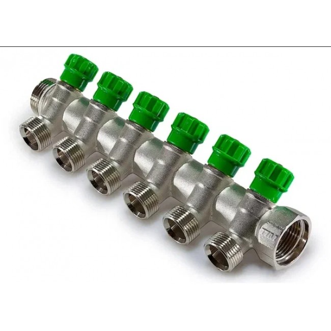 Коллектор вентильный 1" - 3/4" Н 6 выходов без евроконуса MR135NE-1-6 TIM